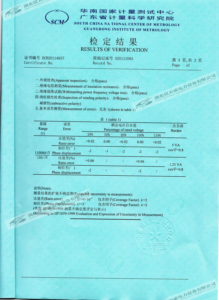 JDZ-110電壓互感器的資質(zhì)證書